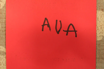 I found the .jpg image online and re-sized it. Then I double stick taped it to red card stock and Ava signed the back.
